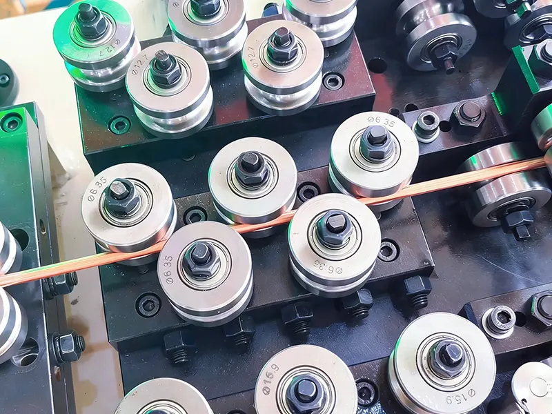 La fábrica GRM Rolling Mill ofrece un laminador de alambre electromagnético de alta precisión, diseñado para formar con precisión alambres magnéticos rectangulares. El equipo utiliza procesos de extrusión o laminado en frío y garantiza que el alambre tenga formas de esquina precisas a través de múltiples pasadas de laminado y pueda aislarse con una envoltura esmaltada, de papel o de poliéster. El laminador tiene un sistema de control de espesor y ancho de alta gama para garantizar una excelente densidad de la bobina y calidad de aislamiento, y se usa ampliamente en la fabricación de equipos eléctricos de alto rendimiento, como motores, transformadores e inversores.